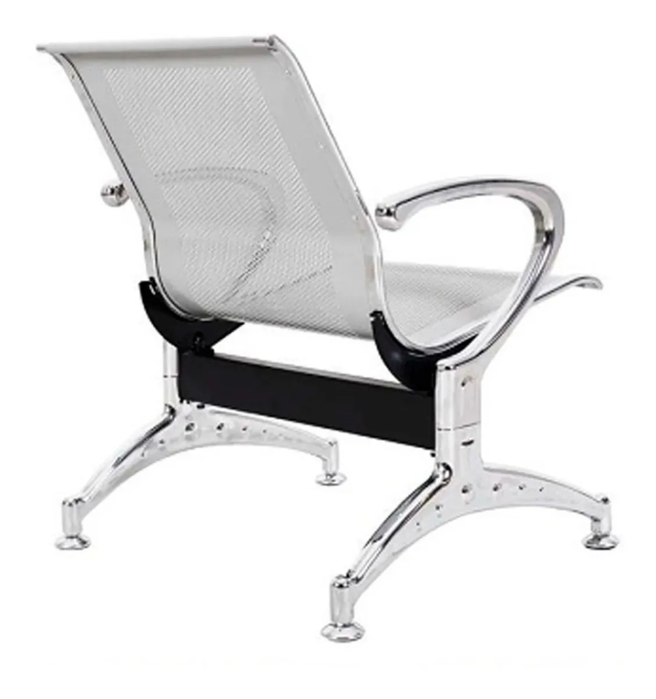 O design contemporâneo desta cadeira longarina cromada, inspirado em modelos aeroportuários, traz um toque profissional e sofisticado ao ambiente. O assento e o encosto em chapa metálica perfurada garantem ventilação constante, tornando a espera mais agradável mesmo em períodos prolongados.